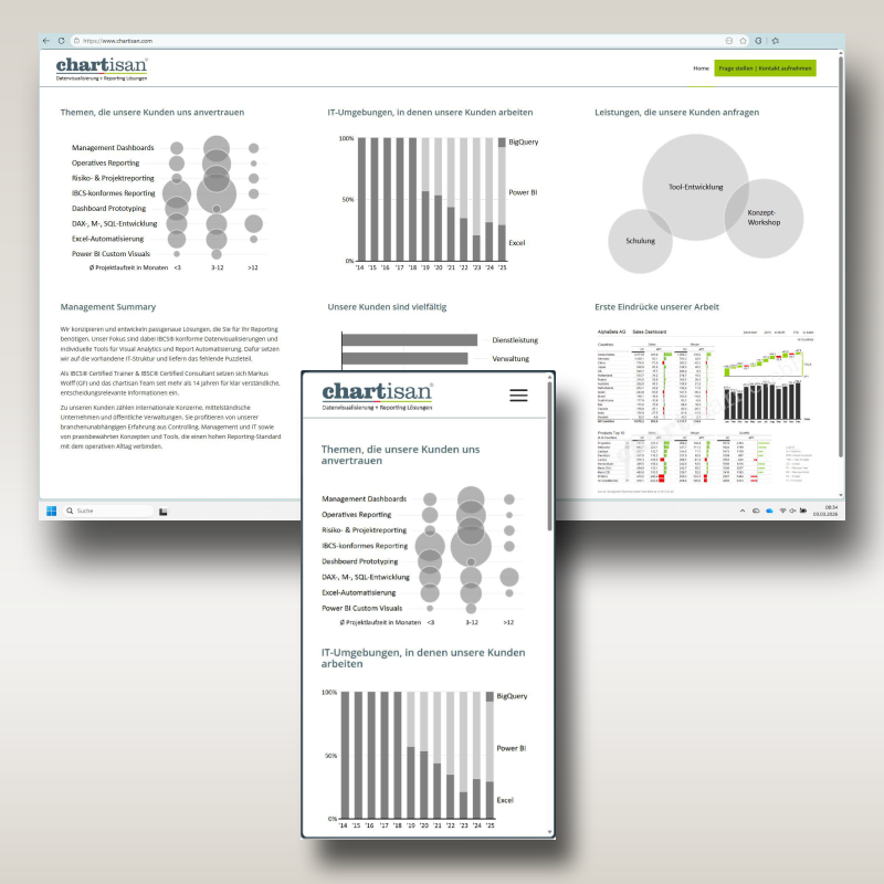 Die chartisan GmbH ist Experte für Datenvisualisierung und Reporting Lösungen. Das Leistungsspektrum ist interessant für B2B-Kunden, vorrangig in Europa. Das Angebot ist komplex und anspruchsvoll in der Erklärung.