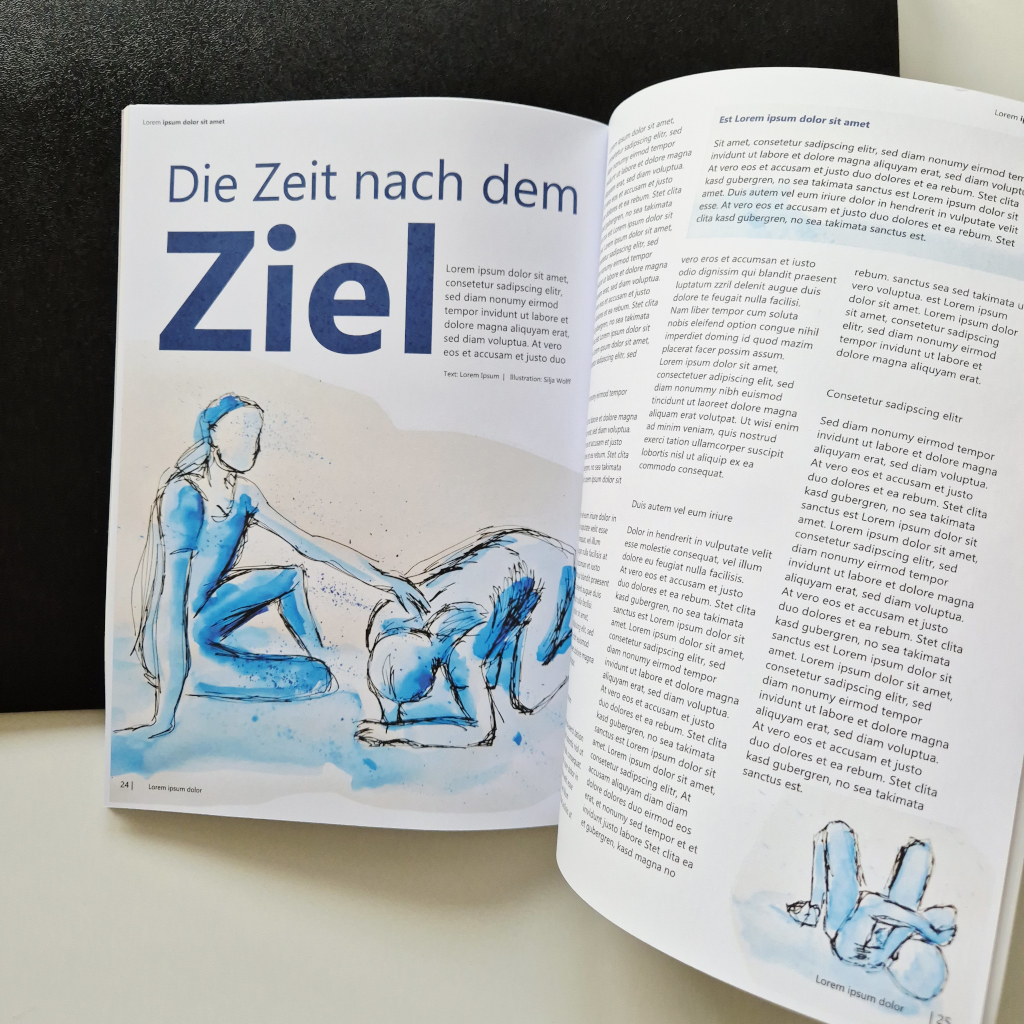 Die geplanten Seiten, einschließlich der von mir erstellten Illustrationen, als Mockup